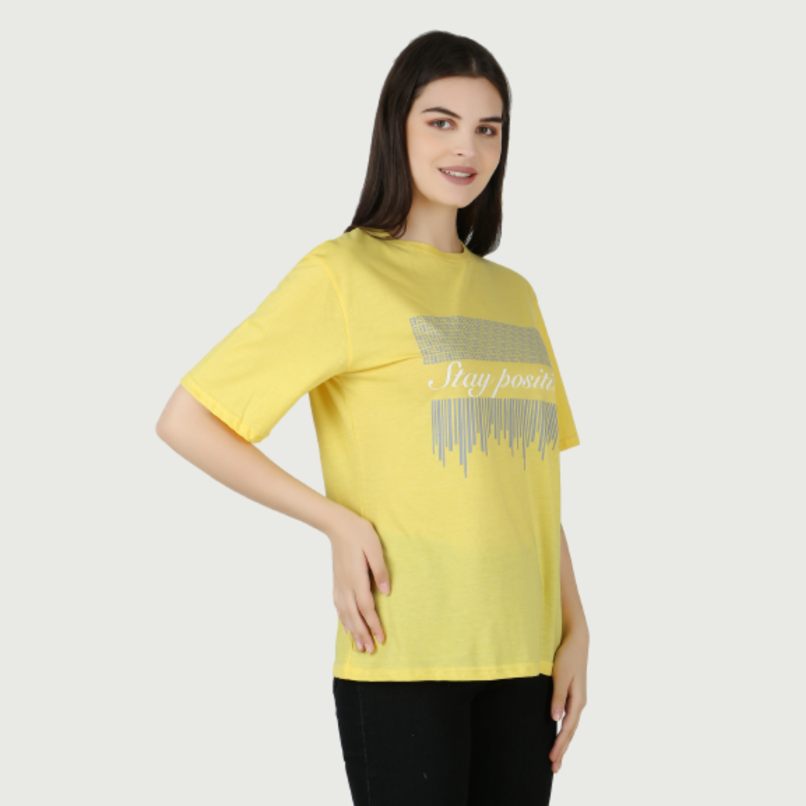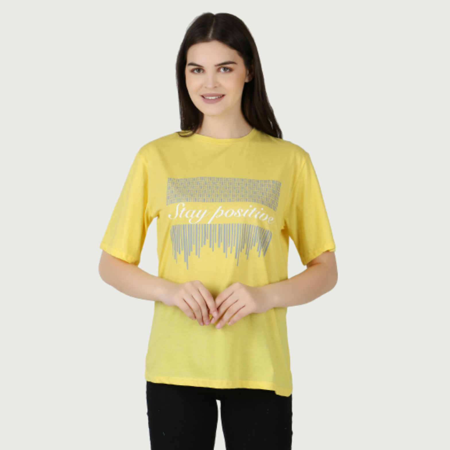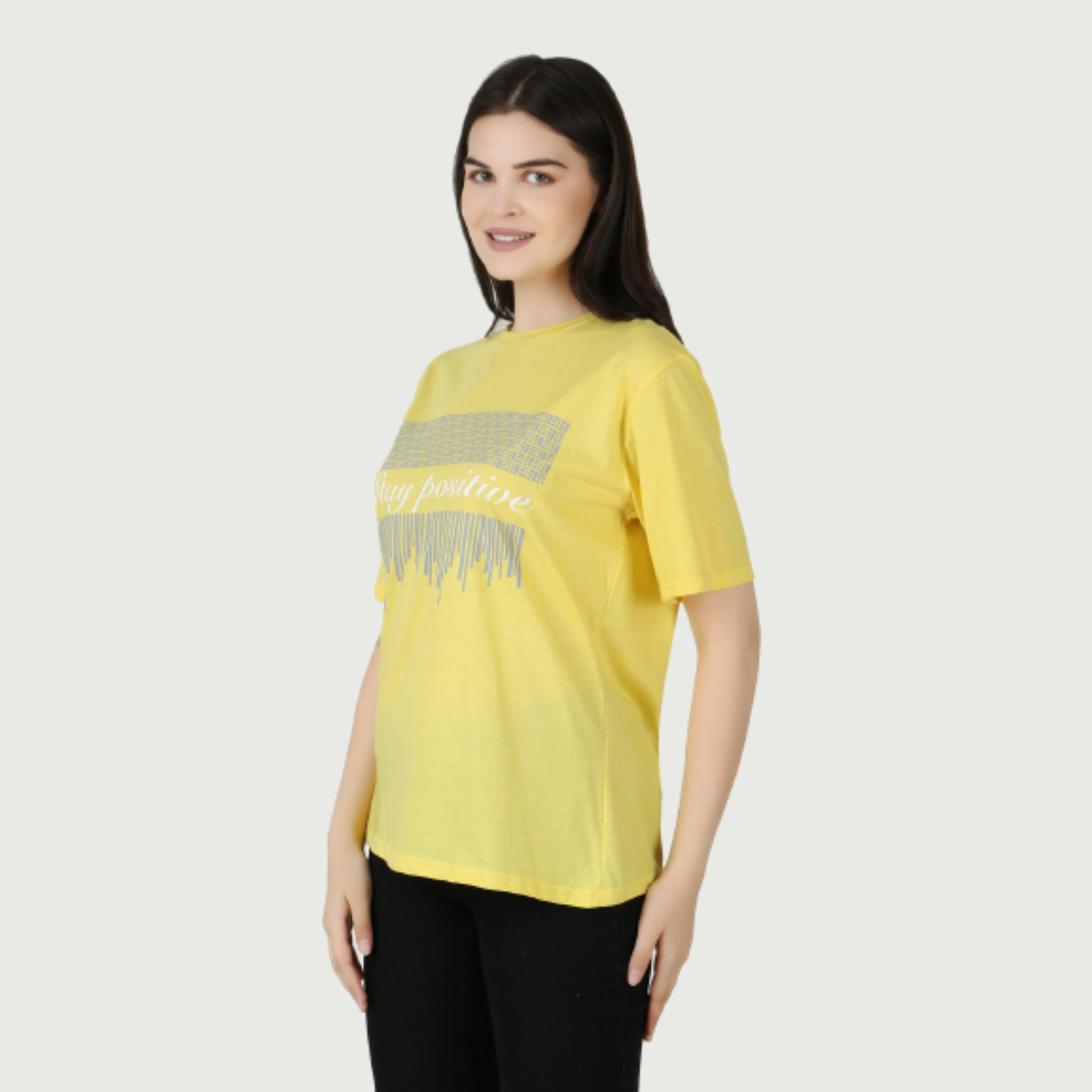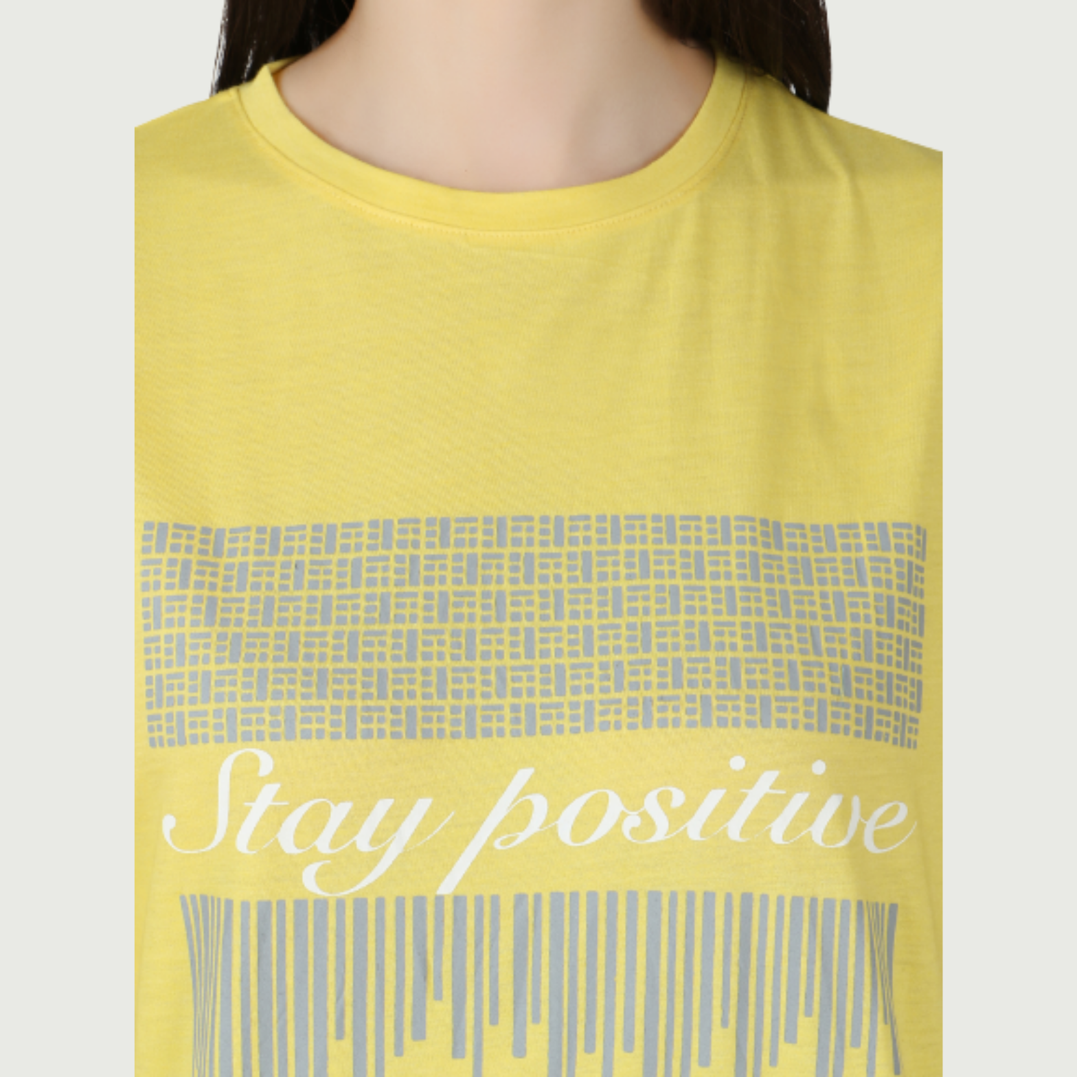 Women Printed Round Neck Cotton Stay Positive Yellow T-Shirt
