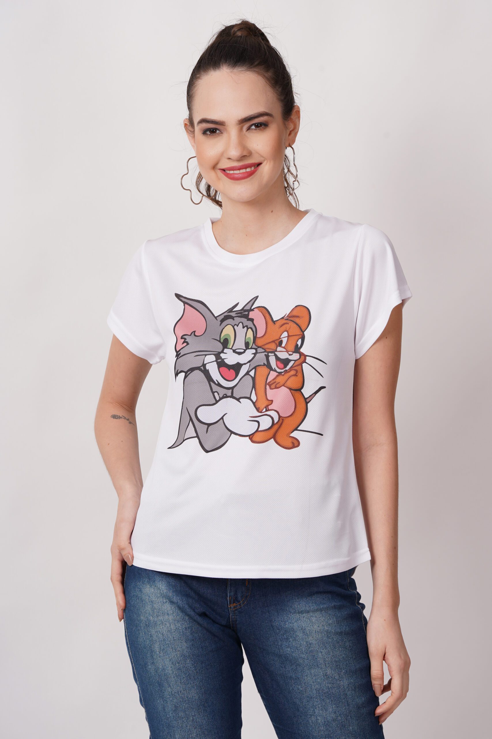Women Tom & Jerry Graphic Printed White T-shirt